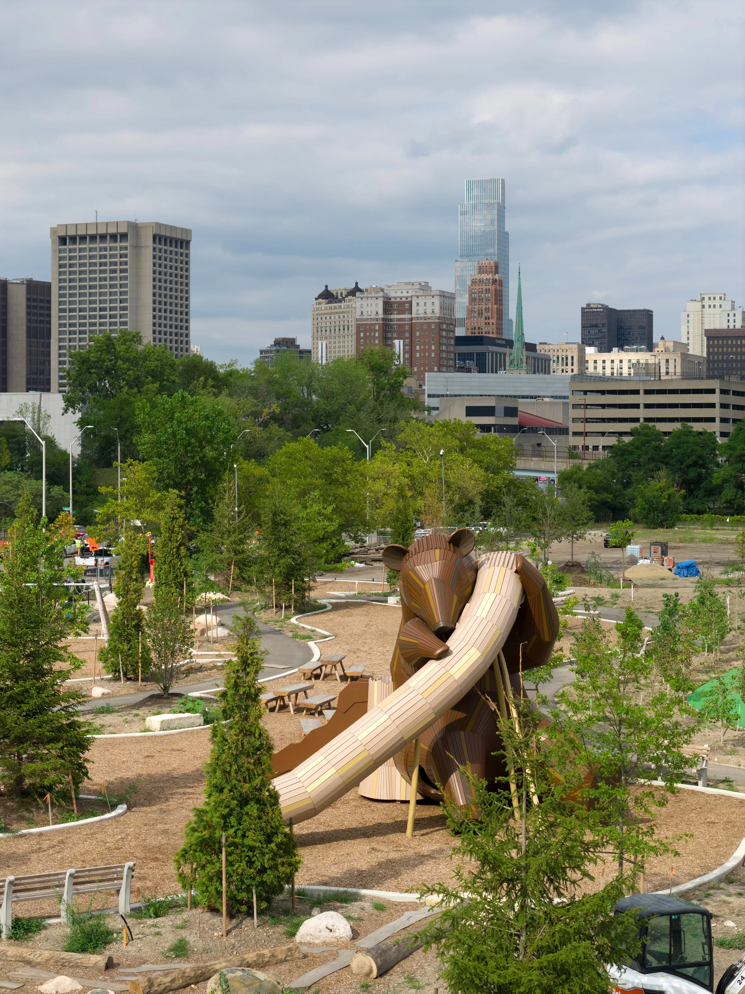 This one-of-a-kind playground invites young visitors to explore in unforgettable ways, with giant slides, climbing towers, swings and more.